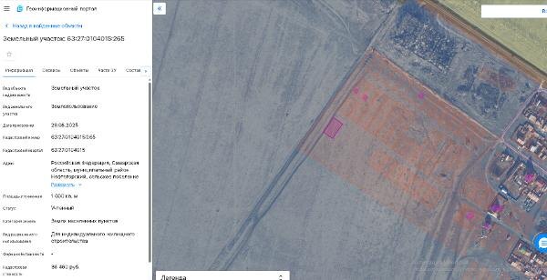 Название: земельный участок, площадью 1000 кв.м., с кадастровым номером 63:27:0104015:265, земли населенных пунктов, расположенный по