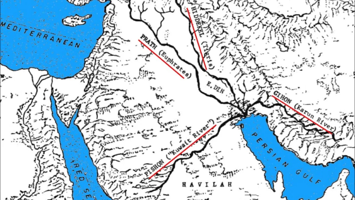 В нем упоминаются четыре реки. Часть этих рек существуют до сих пор, а часть существовала раньше. Хиддекель — название реки Тигр на иврите. Тигр и Евфрат присутствуют и ныне - они протекают по территориям современных Турции, Сирии и Ирака. Под Гихоном, возможно, имеется ввиду река Карун на юго-западе Ирана. Исток Каруна — в горах Загрос, в древности река впадала непосредственно в Персидский залив. Фисон — с высокой вероятностью река под названием Вади-эль-Батин, которая раньше протекала в Саудовской Аравии, но к настоящему моменту является пересохшей. По данным археологов эта река тысячелетия назад орошала восточную и центральную части Аравийского полуострова.