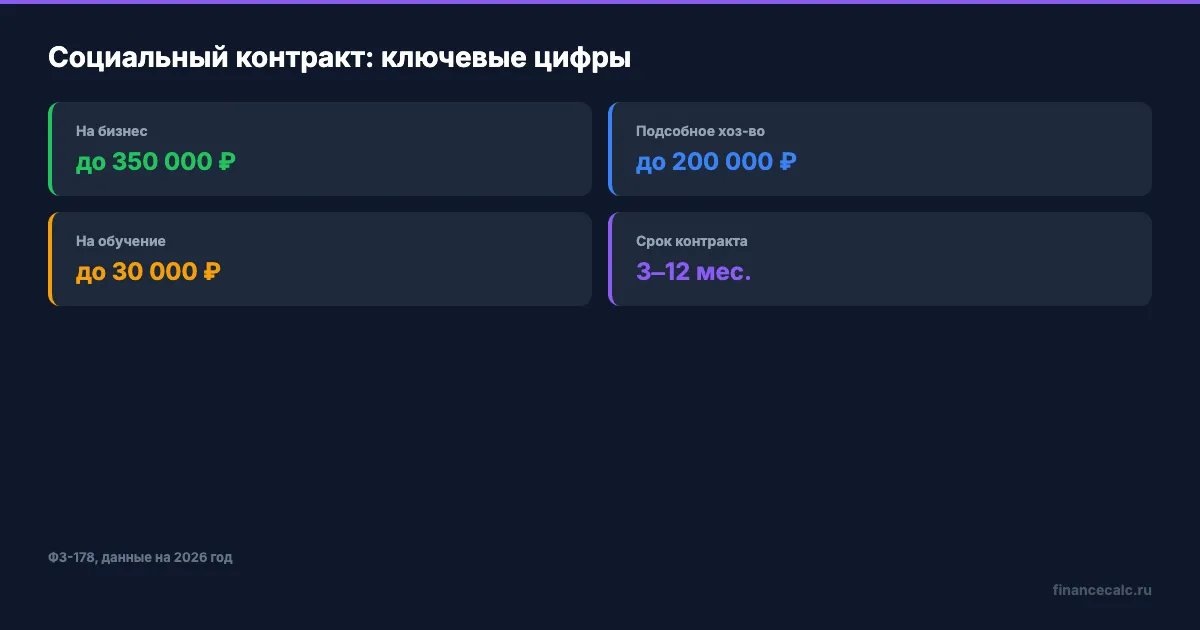 Социальный контракт — один из немногих инструментов, где государство даёт деньги без возврата. Подайте заявление в МФЦ или через Госуслуги, если ваш доход ниже прожиточного минимума и вы готовы отчитаться за каждый рубль. Чтобы увидеть, сколько стоит альтернатива — рассчитайте стоимость кредита на кредитном калькуляторе и сравните. О других государственных программах читайте в статье «Госпрограммы для покупки жилья 2026».