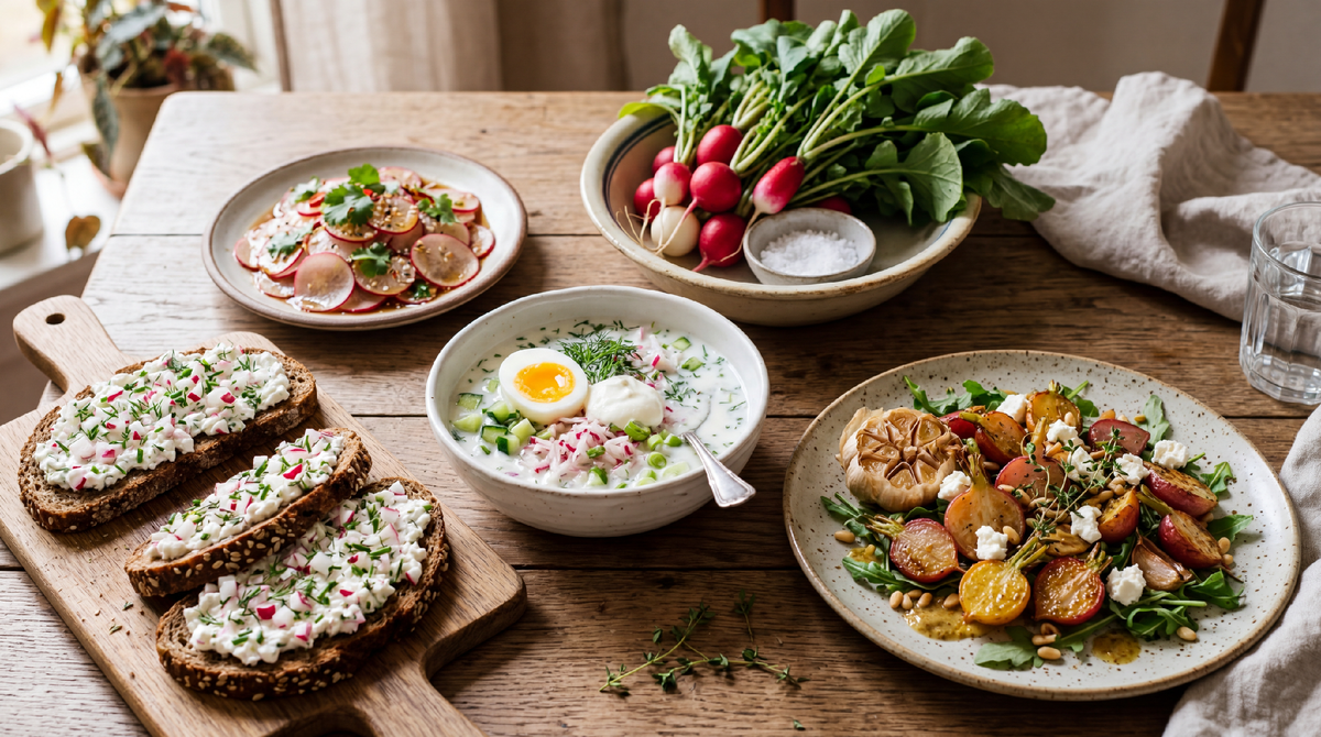 Мартовская редиска щедра, но недолговечна. Через пару-тройку недель она станет другой — и ждать возвращения того самого мягкого весеннего вкуса придётся целый год. Поэтому, если вы ещё не были на рынке в эти выходные, самое время собраться. Купите три-четыре пучка яркой хрустящей редиски, захватите пучок укропа и пачку творога, и проведите вечер на кухне. Ваш ужин запомнится надолго — не потому что он сложный или дорогой, а потому что он по-настоящему весенний.