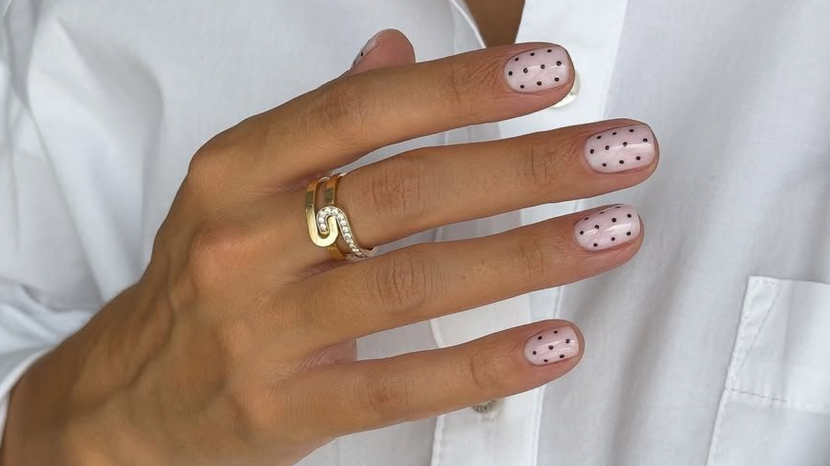 — сочетание с френчем или мягкими эффектами вроде “кошачьего глаза” И самый интересный вариант — когда точки почти незаметны. Оттенок отличается от б