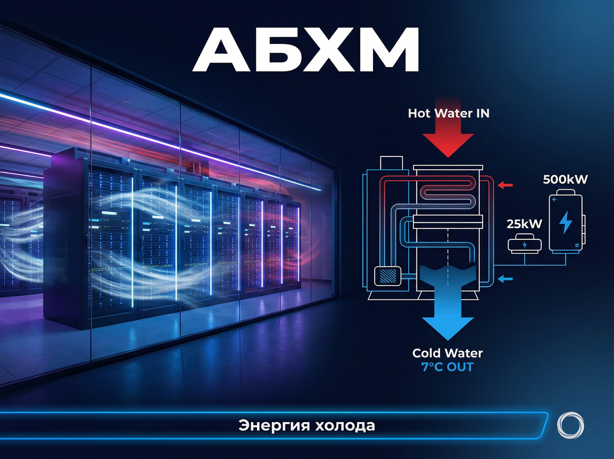 На прошлой неделе на MCE 2026 в Милане — крупнейшей выставке HVAC в Европе — Danfoss, Johnson Controls и Samsung наперебой показывали решения для охлаждения дата-центров. Рынок оценивают в $12,8 миллиарда и прогнозируют рост до $31 миллиарда к 2034 году. Я 22 года занимаюсь промышленным охлаждением. Произвожу чиллеры и градирни. И вот что меня поражает: весь мир сейчас «открывает» технологию, которой полвека. Называется она абсорбционная холодильная машина — АБХМ. Суть простая Обычный чиллер — это компрессор, который жрёт электричество. На 2 мегаватта холода ему нужно больше 500 киловатт электрической мощности. АБХМ работает на горячей воде. Ей нужно всего 25 киловатт электричества на те же 2 мегаватта. Разница — в двадцать раз. Откуда горячая вода? Да из самого дата-центра. Серверы греются, тепло сбрасывается в контур — а АБХМ превращает это тепло обратно в холод. Почему об этом заговорили именно сейчас Три причины. Первая — деньги. Стоимость электричества для дата-центров ра