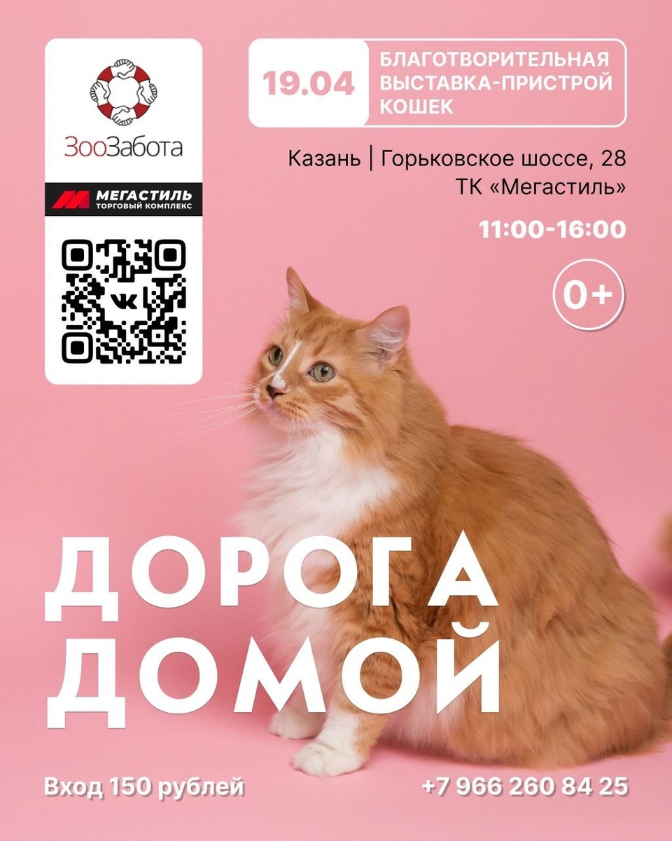 " 19 апреля в ТЦ «Мегастиль» пройдёт 33-я благотворительная выставка «Дорога домой» — ежегодное мероприятие по пристройству кошек в семьи, которое организует «Зоозабота». Здесь можно: 🐾 познакомиться с котиками, которые ищут дом; 🎨 поучаствовать в мастер-классах; 🛍 приобрести товары для своих питомцев; 🥫 принести корм для животных приюта — важен любой вклад. Мы, команда Cattoi, участвуем в этом мероприятии уже в третий раз — и снова с подарком от всего сердца. Каждой семье, которая в этот день заберёт котёнка домой, мы подарим упаковку нашего наполнителя 🎁 Приходите, если вы из Казани — может быть, именно здесь вас будет ждать ваш кот 🏠🐈 Адрес: ТЦ «Мегастиль», Горьковское шоссе, 28 Время: с 11.00-16.00