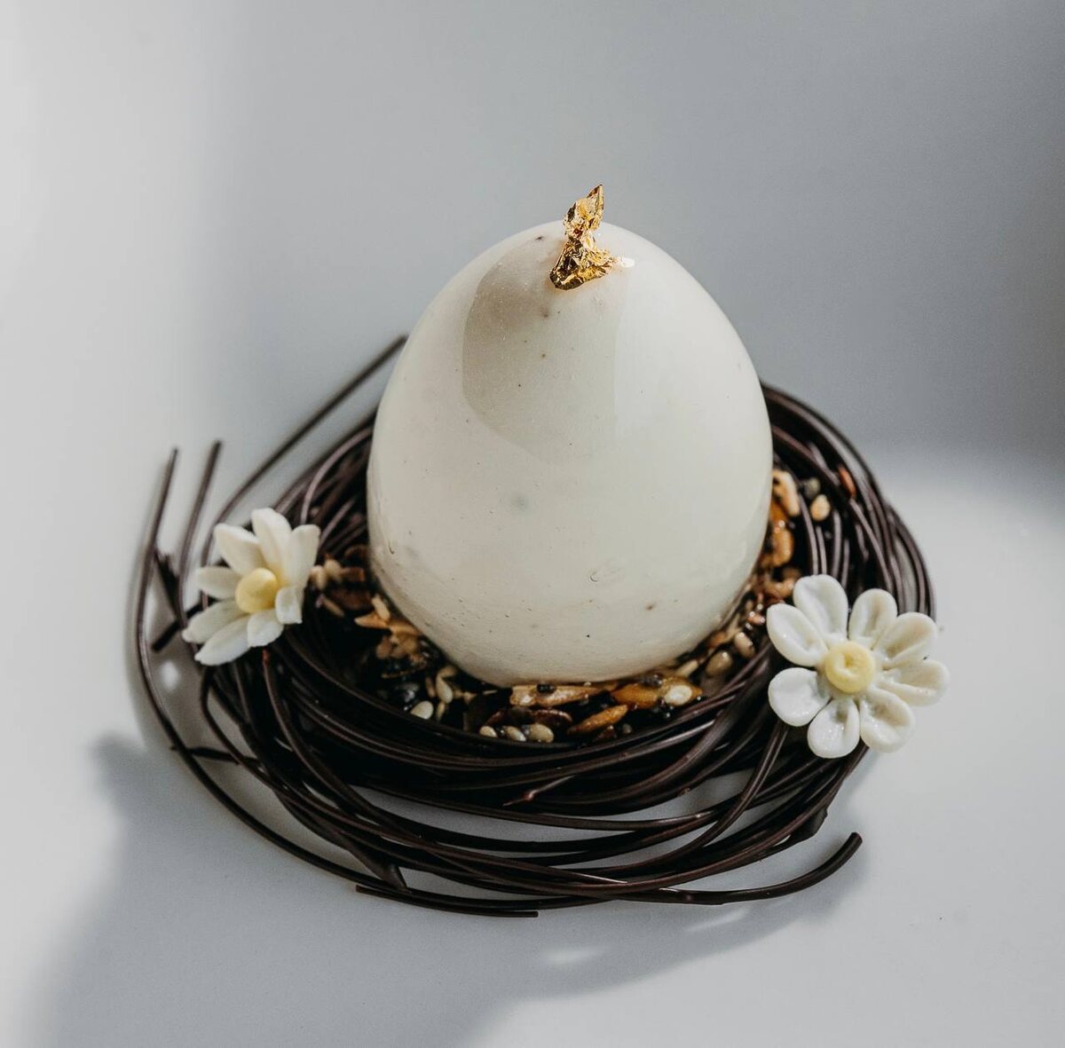 Десерт дня: яйцо из кокосового мусса с начинкой из маракуйи, украшенное золотом от шеф-кондитера SAVVA Артема Грачева