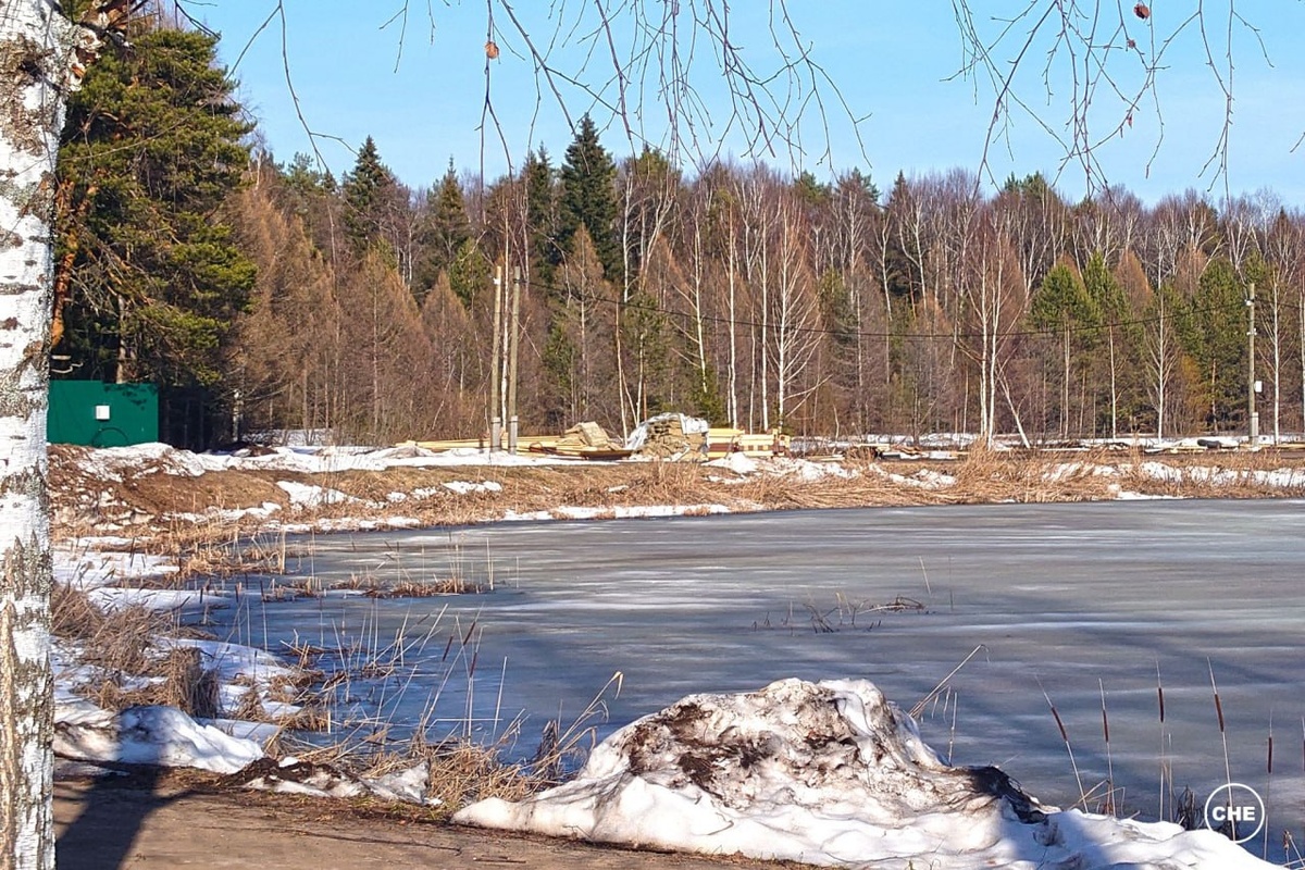 На бывшей базе отдыха в Каркино убирают незаконные постройки и снимают часть заборов, мешавших выходить на берег пруда и Просницы