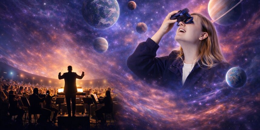 Проект представляет собой уникальный синтез классического искусства и передовых технологий, предлагая принципиально новый культурный опыт. Проект объединяет профессионалов академической сцены и команду, работающую с иммерсивными технологиями. В основе шоу лежит идея полного погружения зрителя в музыкальное повествование. В первой части вечера под управлением дирижера Михаила Голикова симфонический оркестр "Таврический" (более 50 музыкантов) исполнит знаковые произведения: "Болеро" Мориса Равеля и "Симфонические танцы" Сергея Рахманинова под масштабные космические проекции на крупнейшем в мире куполе. Это создаст эпичный пролог к главному событию. Кульминацией станет 10-минутная виртуальная сюита "МАРС:СИМФО", созданная композитором Key Lean и оркестрованная Муратом Кабардоковым, которая рассказывает фантастическую историю гибели и возрождения древней марсианской цивилизации - через путь одной героини, носительницы знания и надежды. В финале каждый зритель получит компактную VR-гарнитур