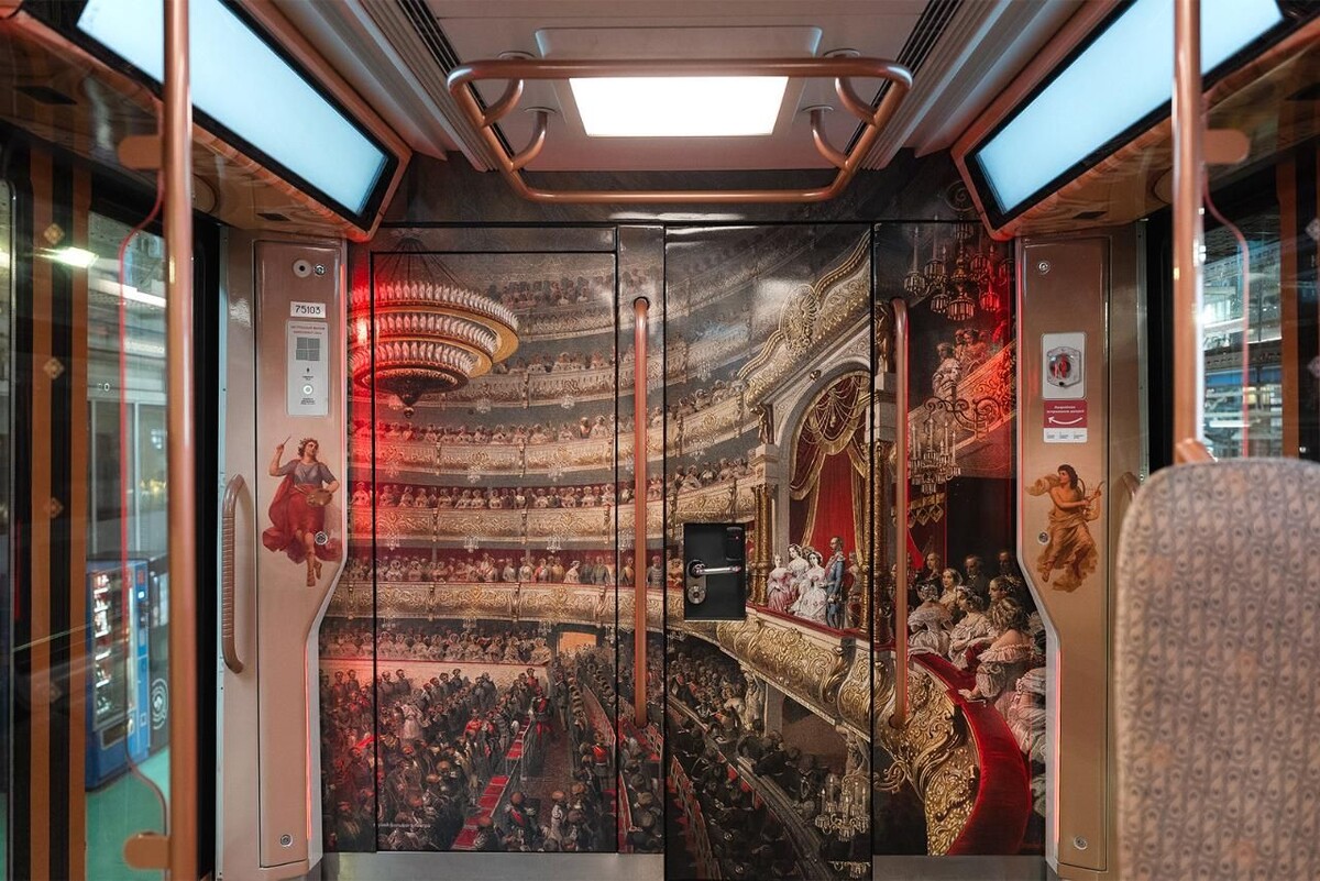 К 250-летию Государственного академического Большого театра России на Кольцевой линии метро запустили тематический поезд. В течение шести месяцев пассажиры смогут познакомиться с историей главной сцены страны, ее выдающимися артистами, режиссерами и ключевыми постановками. Экспозиция внутри вагонов рассказывает о закулисной жизни театра и его текущем репертуаре. Отдельное внимание уделено современному этапу развития Большого театра.