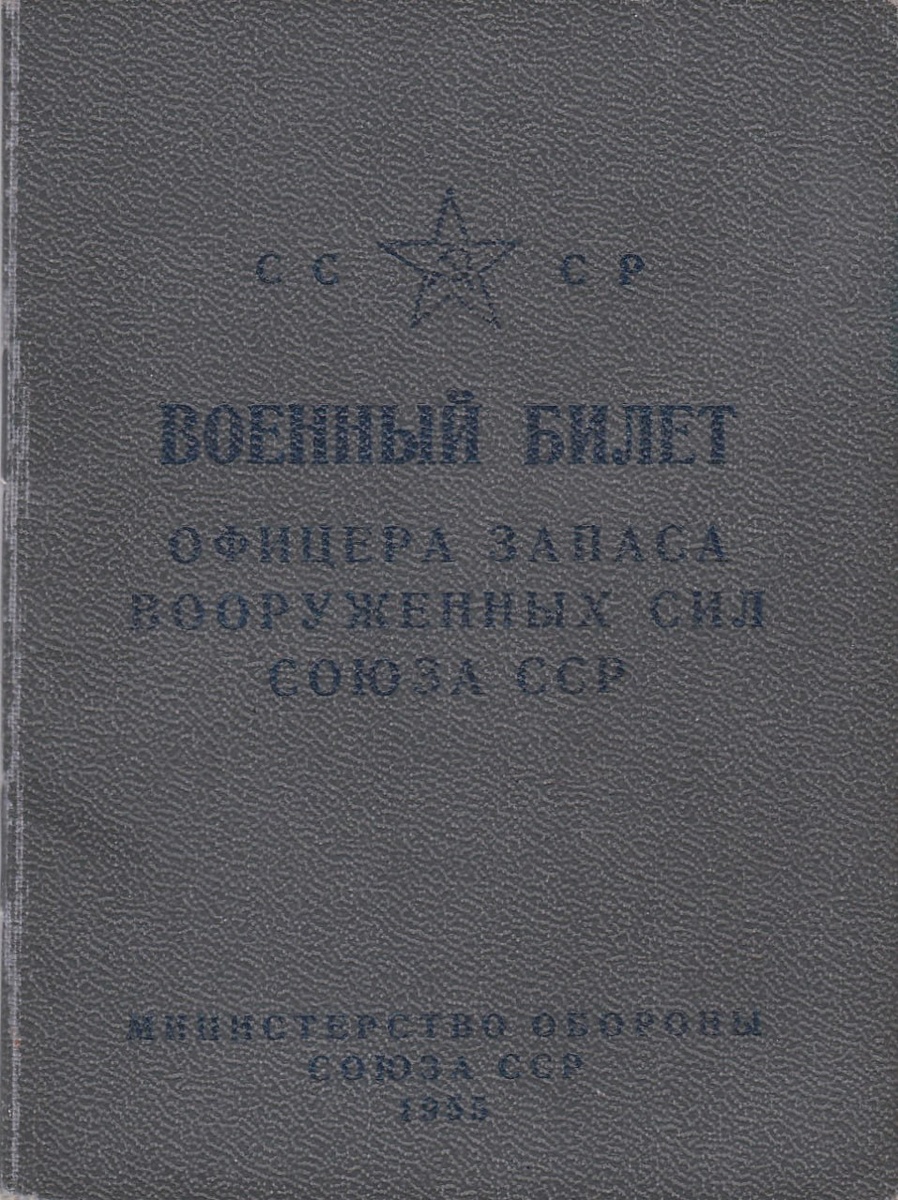 Военный билет офицера запаса майора интендантской службы Фастовского Л
