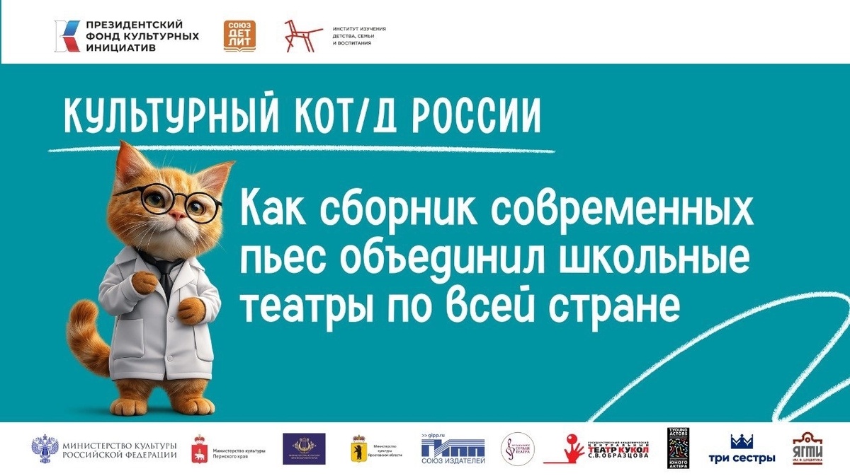 Кажется, ещё недавно школьные театры часто жаловались: ставить нечего. Либо классика, которую дети пока не всегда «понимают», либо случайные сценарии из интернета без внятной педагогической логики. Ситуация начала меняться, когда в 2025 году Союз детских и юношеских писателей при поддержке Президентского фонда культурных инициатив выпустил сборник пьес «Культурный кот/д России».