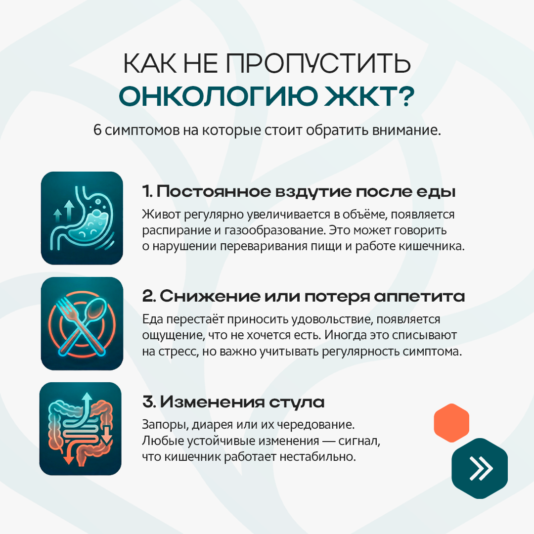 📍Когда речь заходит об онкологии желудка или кишечника, многие представляют себе резкую боль, тяжёлое состояние и яркие симптомы. Но на практике главная опасность в том, что первые сигналы кажутся незначительными.