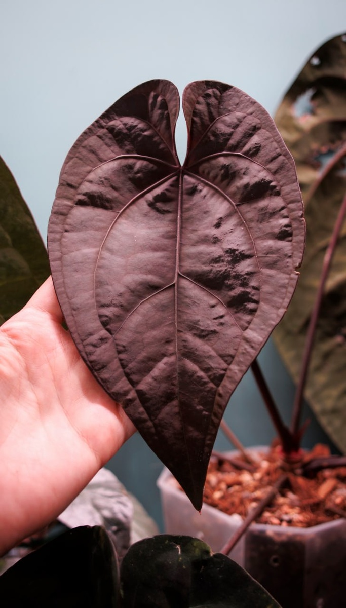 ). Предыдущий лист видно на 1 фото 😁 весь дырявый Но вот влажность в норму не вернулась, а молодой лист все же растет ровный Очень темный с фиолетовым отливом 🥰 Надеюсь, развернется огроооомным Рядом с ним сейчас стоит его дальний родственник - AOS Tezula x Kunayalense, можно сравнить) Все антуриумы после зимовки попортили старые листья ( очень надеюсь, что отрастят новые лопухи поскорее