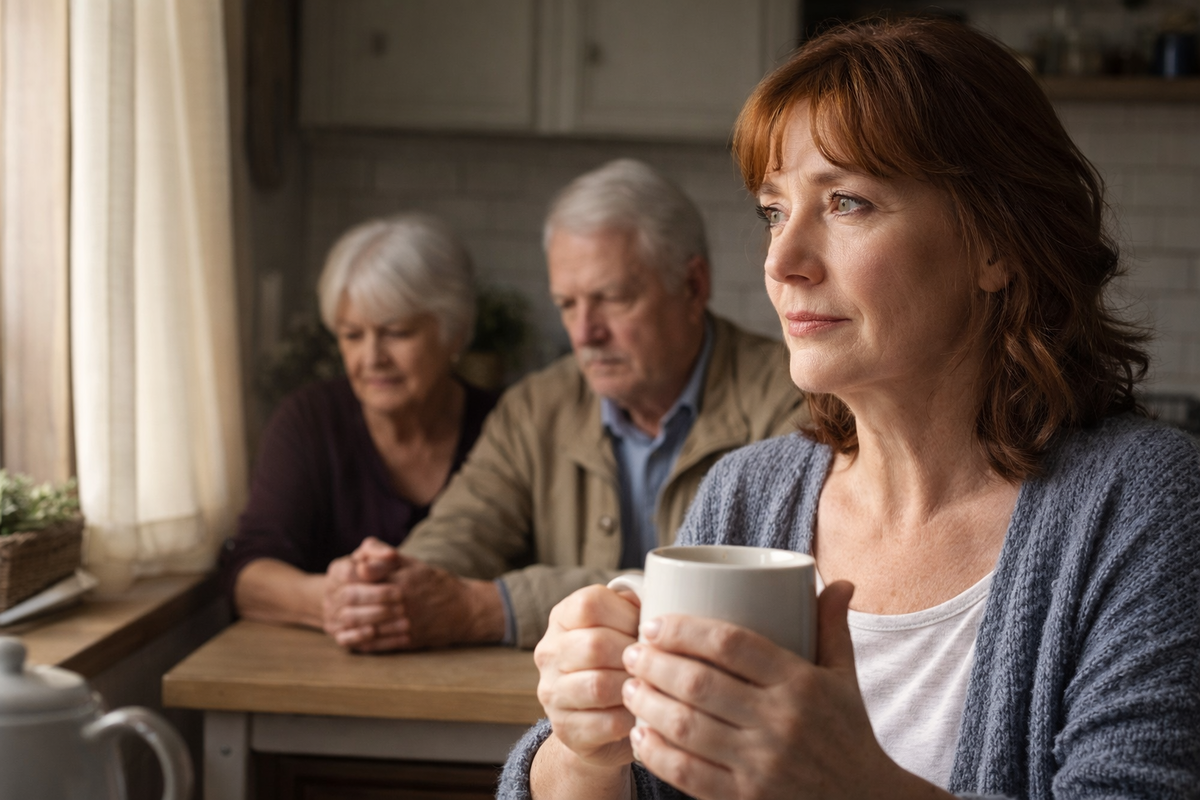 Женщины её возраста уже знают: настоящее не кричит. Оно приходит тихо. С чашкой чая. С починенным замком. С яблоками в пакете. С вопросом: «Вы добрались нормально?» С взглядом, в котором нет лжи.