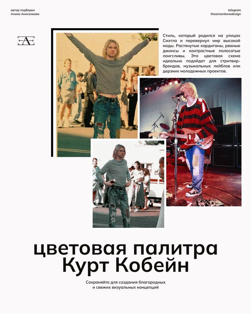 Стиль, который родился на улицах Сиэтла и перевернул мир высокой моды. Растянутые кардиганы, рваные джинсы и контрастные полосатые лонгсливы. Эта цветовая схема идеально подойдет для стритвир-брендов, музыкальных лейблов или дерзких молодежных проектов. Секрет палитры: Контраст теплого агрессивного красного с глухими, «пыльными» темными оттенками. Это цвета, которые не пытаются понравиться, и именно поэтому притягивают взгляд.