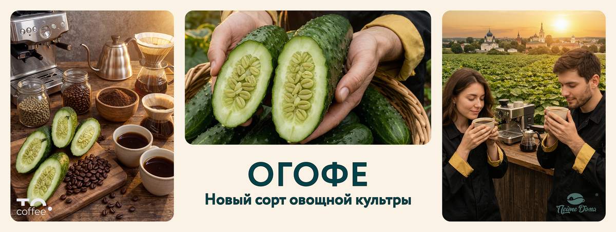 Помните наш прошлогодний агрономический эксперимент? Мы решили воссоздать идеальный микроклимат для арабики под Суздалем, в самом сердце России, высадив ее в тени раскидистых огуречных листьев. План был прост: защитить нежные кофейные кусты от прямого солнца, используя естественный навес огуречных листьев. Мы и сами не ожидали, что такое соседство приведет к биологической сенсации. С легкой иронией природа решила вмешаться и подарила нам новый сорт овощной культуры –огурец, внутри которого, вместо обычных семян, созрели полноценные кофейные зерна. Команда контроля качества в лаборатории «Пейте Дома» немедленно приступила к исследованиям. Эксперименты с обжаркой и завариванием этих уникальных зерен поразили всю компанию своим необычным, освежающим профилем. Представьте: классический бодрящий аромат кофе, который раскрывается невероятной свежестью огурца прямо в вашей чашке. Идеальное сочетание для тех, кто ищет новые вкусовые ощущения и не боится самых смелых экспериментов. Это самый ст