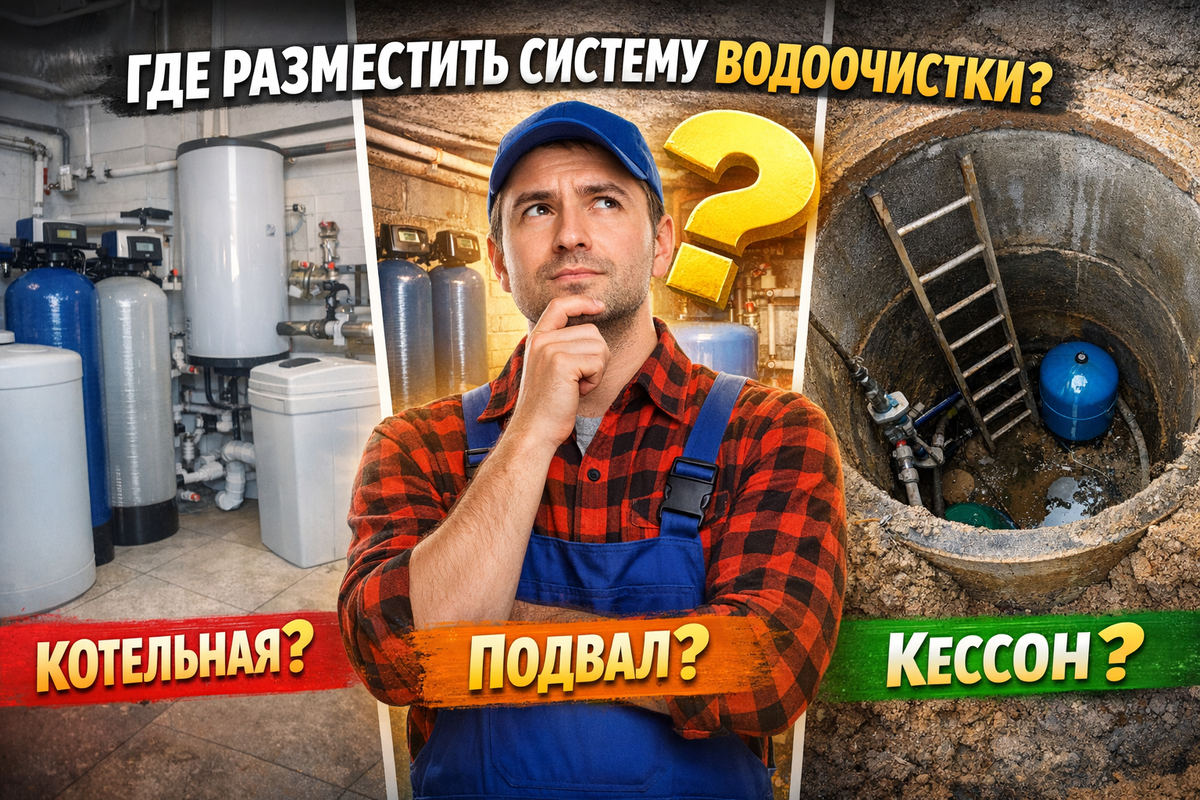 Если систему подобрать правильно, но поставить её в неудобное или неподходящее место, проблемы начнутся уже в первый сезон: конденсат, перемерзание, плохой слив, неудобная засыпка соли, сложный доступ к клапанам и постоянные мелкие доработки. Именно поэтому размещение системы водоочистки в доме нужно продумывать не после покупки фильтров, а до подбора оборудования. В этой статье разберём, где разместить фильтры в частном доме, чем отличаются котельная, подвал и кессон, какие есть требования к помещению для водоочистки и что стоит проверить до монтажа.