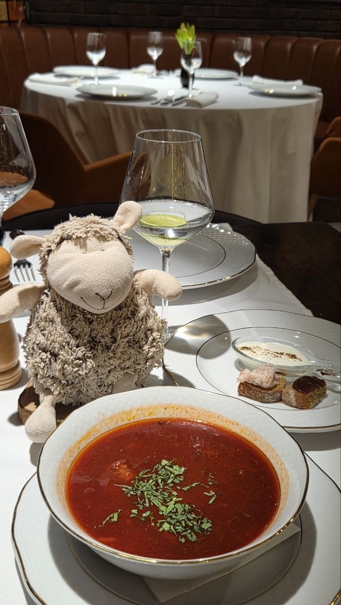 : - Борщ (890 руб.) – специй мало, показался пресным. Хотя это тоже поправимо. - Казарече (1190 руб.) – вот с пастой все прекрасно. Сварена как надо, вкус есть, зачет! Ну, и под финал ужина в Гриль-ресторане FireLake: - Стейк Флан (1850 руб.). Для него предусмотрена презентация перед заказом куска мяса, как в дорогих ресторанах – вам привозят поднос с ассортиментом, и вы выбираете, руководствуясь интуицией. Далее при подаче мяса, вам предлагаю ассорти соли и свежий душистый перец. - Говяжье филе Шато (2190 руб.) – эдакий филе-миньон с ассорти из корнеплодов. К нему уже дополнительно не предлагают ни соли, ни перца… Овца Борис не понял этой гастродискриминации. В итоге картина получилась как типичный сериал: сильное начало, пара провисающих серий в середине и финал, который вроде и ничего, но хочется переписать. FireLake явно умеет — паста это доказала, тартар из оленины тоже. Но кухня гуляет от «очень хорошо» до «давайте пересоберем», и в ресторане при отеле это всегда риск: гость