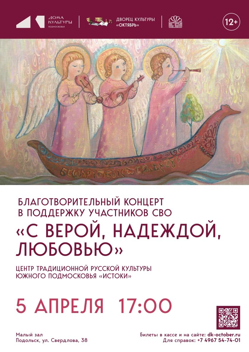✨ Благотворительный концерт 🫶 🎶В исполнении подольских и московских музыкантов, поэтов и фольклорных коллективов. В программе: — исполнение духовных стихов; — песни и стихи о вере и любви; — баллады; — авторские произведения. 🙏Все собранные средства будут направлены в поддержку волонтёрского движения «Ангелы Фронта». 🚫 Возраст: 12+ 📆 05.04.2026 🕒 17:00 🏢 Дворец культуры «Октябрь» 📍 г. Подольск, ул. Свердлова, д.38 💰 Цена от: 300 до 400 ₽ 🔗 Купить билет: https://clck.su/EmyUn ⭐Поддержать канал голосом 🍰Где поесть в Подольске ✅ Мероприятия Подольск https://dzen.ru/id/66ed500f7b5671493eca3fd6 https://vk.ru/podolsk_events http://dzen.ru/podolsk_events
