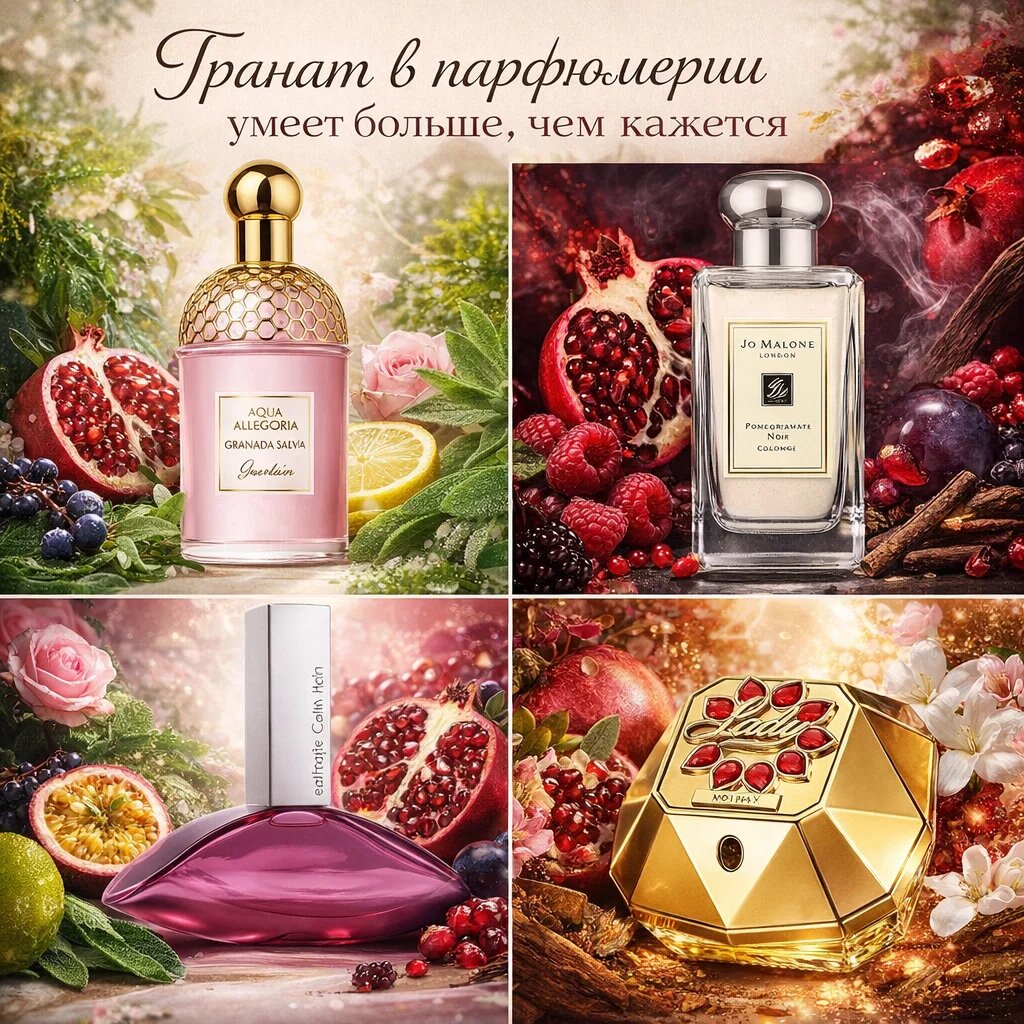 С гранатом в ароматах всё интереснее, чем может показаться сначала. Это не просто сочная фруктовая нота, которую добавляют ради яркого старта. Он умеет вести себя по-разному: где-то даёт ощущение холодного рубинового сока, где-то уходит в более густую, тёмную сторону, а где-то работает почти как импульс внутри композиции - собирает её, ускоряет, делает звучание более живым и современным. Именно поэтому за гранатом так интересно наблюдать. У него нет одной закреплённой роли, как у ванили или, например, плотных белых цветов, от которых обычно ждёшь вполне определённого эффекта. С гранатом всё зависит от окружения. Рядом с цитрусами и травами он становится свежим, звонким, чуть прохладным. В компании древесных, цветочных и тёплых базовых нот приобретает глубину, бархатистость, иногда даже лёгкую драму. Один и тот же фрукт в итоге может звучать почти как прозрачный дневной акцент или как полноценный центр композиции. Мы выбрали четыре аромата, в которых гранат показывает себя с разных стор