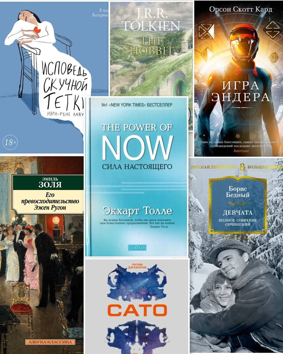 Март для меня стал месяцем неспешного размеренного чтения. Постепенно замедляюсь и перевожу фокус на другие задачи. Это не может не радовать меня как человека, который пару лет назад мог в легкую прочитать 15-16 книг за месяц. Звучит круто, а на самом деле - это как запой🫣 попытка бегства от реальности. Ну а сейчас постепенно ощущение этой самой реальности ко мне возвращается 🤩. А вместе с ним - и отличные книги. Ну и ладно, хватит рассусоливать. Что там у меня было в марте?) 1. Борис Бедный, «Девчата» 2. Рагим Джафаров, «Сато» 3. Эмиль Золя, «Его превосходительство Эжен Ругон» 4. Мари-Рене Лавуа, «Исповедь скучной тетки» 5. Орсон Скотт Кард, «Игра Эндера» 6. Экхарт Толле, «Сила настоящего» 7. John Ronald Reuel Tolkien, «The Hobbit, or There and Back Again» Не могу не порадоваться возвращению привычки читать на английском) а точнее - слушать. На этот раз у меня был «Хоббит» в формате аудиокниги с раскатистым шотландским акцентом. В следующем месяце планирую продолжить традицию. Так