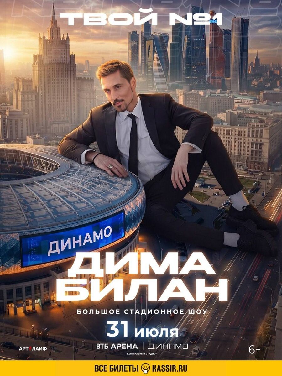 👀 Так артист объявил о большом стадионном шоу «ТВОЙ №1», которое пройдёт 31 июля на ВТБ Арене – Центральном стадионе «Динамо». Дима — самый ротируемый певец на радио России, лидер чартов, обладатель множества премий, единственный победитель «Евровидения» от нашей страны и заслуженный артист. Название шоу отсылает к его легендарной песне, которой уже почти 20 лет. Сам Дима написал: Это уже не просто песня — это движение, которое вы создаёте сами! Похоже, лето 2026 официально становится летом №1. Билеты уже в продаже ➡️ клик А как думаете, как сделали эту гигантскую афишу? 🤔 — это фотошоп 🤔 — это ИИ 🦄 — они просто увеличили Билана
