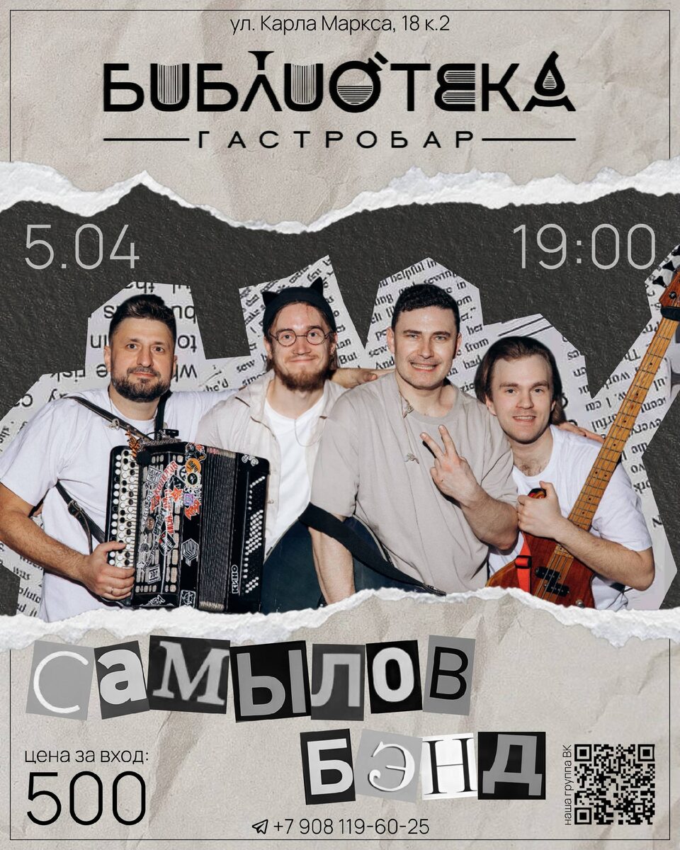Кирилл Самылов празднует день рождения с выступлением группы "Самылов бэнд". Гостей ждут поздравления, танцы и песни. Вход платный, включает напиток. Начало: 05 апреля 2026 19:00 Стоимость: 500.0 руб. Адрес: г Омск, пр-кт Карла Маркса, д 18 к 2 Организатор: https://vk.com/public2164135 День рождения, только раз в году! 5 апреля с 19:00 Кирилл Самылов будет праздновать свой день рождения. На нашей сцене выступит группа "Самылов бэнд ", а мы с вами будем петь, танцевать и поздравлять. Вход: 500р Велком на входе🍹 #развлечения_современная_музыка Узнать подробности, адрес или записаться на событие.