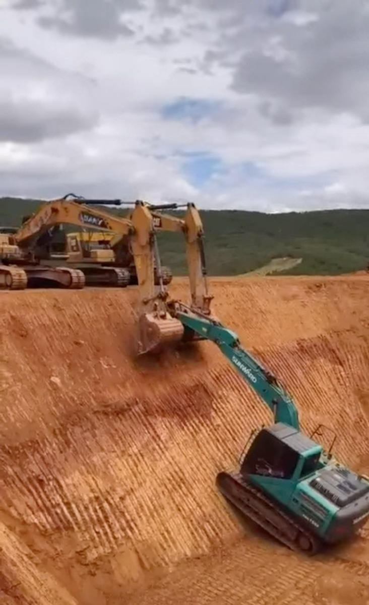 Братство экскаваторщиков, помогли своему товарищу выбраться из большого котлована