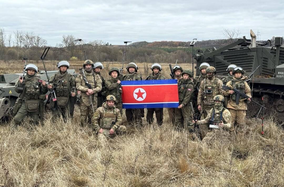 🇷🇺🇰🇵Недавняя фотография северокорейских саперов со своими российскими коллегами во время работ по разминированию в Курской области