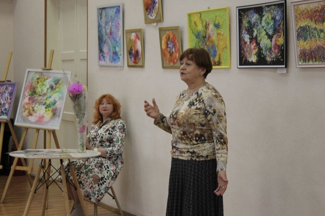 А. Семенова открылась выставка Ирины Воронцовой «И кажется – лечу я над Землею!» в рамках литературно-эстетического проекта «Библиогалерея». Вернисаж прошел при поддержке комитета культуры и туризма города Курска. «Одиночеству нужен простор», «Путь в созвездии Тельца», «И никто над цветами не властен», «Морских мелодий аромат», «Ритмы миражей»- эти и другие незаурядные названия говорят о еще более необычных полотнах, напоминающих полет стаи жар-птиц на фоне радуги или столкновение галактики с туманностью. Достижения нашей землячки недаром принесли ей высокий статус члена Всероссийской творческой общественной организации «Союз Художников Авангарда» Санкт-Петербурга. В нынешней экспозиции Ирина Михайловна продолжает путь, намеченный в свое время Казимиром Малевичем и Василием Кандинским. С другой стороны, по образованию она художник театра и кино и, как подтверждают снимки ее работ в этой сфере, способна по классическим канонам отразить в афише или макете все замыслы драматургов и сцен