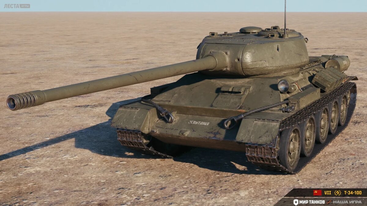 Советский премиум СТ VII уровня T-34-100 для предстоящего майского события «Время героев». Танк Т-34-100 был спроектирован в КБ-520 завода №183 в Нижнем Тагиле в начале 1945 года и являлся дальнейшим развитием танка Т-34-85 в сторону усиления его огневой мощи при сохранении прежней массы и подвижности. Для танка была разработана новая башня с расширенным погоном, в которой устанавливалась мощная 100мм пушка. Весной 1945 года завод №183 приступил к подготовке серийного выпуска танка Т-34-100. Такое решение позволило бы дать Красной армии массовый средний танк с более мощным, чем у Т-34-85 вооружением, без снижения общего выпуска танков, что было крайне важно в военное время. Однако этим планам не суждено было сбыться: сразу же после завершения Великой Отечественной войны от производства танка Т-34-100 было решено отказаться в пользу более совершенных средних танков Т-44 и Т-54.