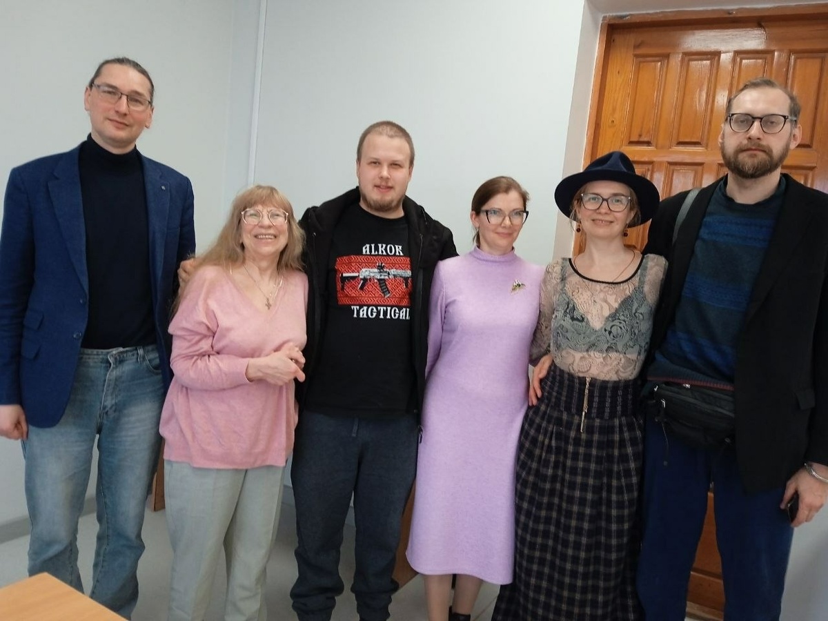 Итак, я всё еще мысленно пребываю в дне пятницы 27-го марта. Но здесь уже пора поведать о принимающей стороне. В лице Андрея Чернова (на снимке рядом со мной с краю), меня привечал Союз писателей ЛНР. И Андрей Чернов, и все, о ком я упомяну дальше - друзья капитана Сигиды, благодаря кому моя поездка в Луганск и случилась. Александр давно живет в Донецке, но родом из Луганска и давно хотел познакомить меня со своим городом. Сам он сейчас слишком занят на передовой, но вот - всё устроил. Спасибо, Александр, Вы сделали мне волшебный подарок! Из музея В.И.Даля мы с Андреем поспешили к нему в Луганскую государственную академию культуры и искусств им. М.Матусовского. Там мне предстояла встреча со студентами. Тему лекции я взяла - "История как современность". Тема непростая, нужды нет. Я хотела донести основную мысль: без Прошлого у народа нет Будущего. Необходимо было показать современные тенденции в трактовках давних событий, связать их с социально-политической картиной сегодняшнего дня. Н