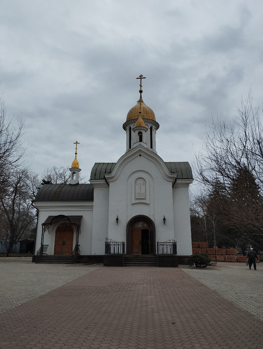 Сегодня расскажу вам об этом необычном храме, который находится в историческом центре Донецка. Где он находится? Чтобы это понять, достаточно взглянуть на одно из фото в этой давней статье: