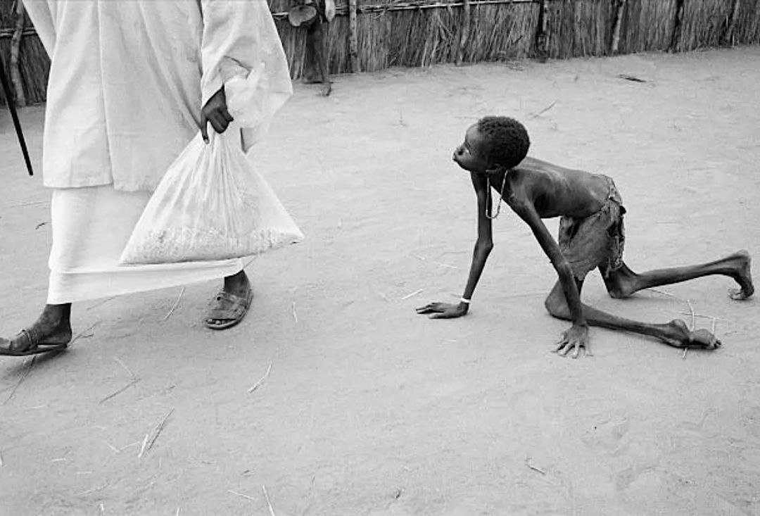 ! Это происходит во время раздачи еды в центре питания "Врачи без границ" в Аджипе, южный Судан, 1998 год. Сцена, прямо как из фильма, но, увы, это реальность. 📸 Фотография, сделанная в Судане, в Айджепе, Бахр-эль-Газаль, показывает, как жесток может быть голод. В начале 1998 года в результате этого голода на юго-западе Судана погибло примерно 250 000 человек. Ужас, не правда ли? 😢 Фотограф, который запечатлел этот момент, рассказал, что все снимки во время голода 1998 года были черно-белыми. Почему? Да потому что, если снимать в цвете, можно увидеть цвет одежды! А это, как вы понимаете, совсем не то, что нужно в такой ситуации. Вот такие вот парадоксы жизни!