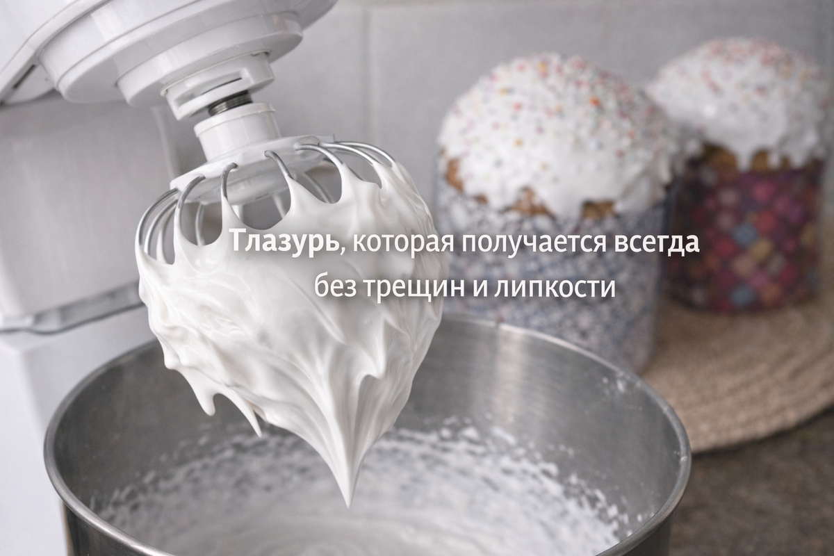 Эта глазурь получается всегда, даже если вы делаете её впервые. Она густая, тягучая, красиво ложится на кулич и самое главное — не липнет и не трескается. Секрет не в сложной технике, а в правильных пропорциях.