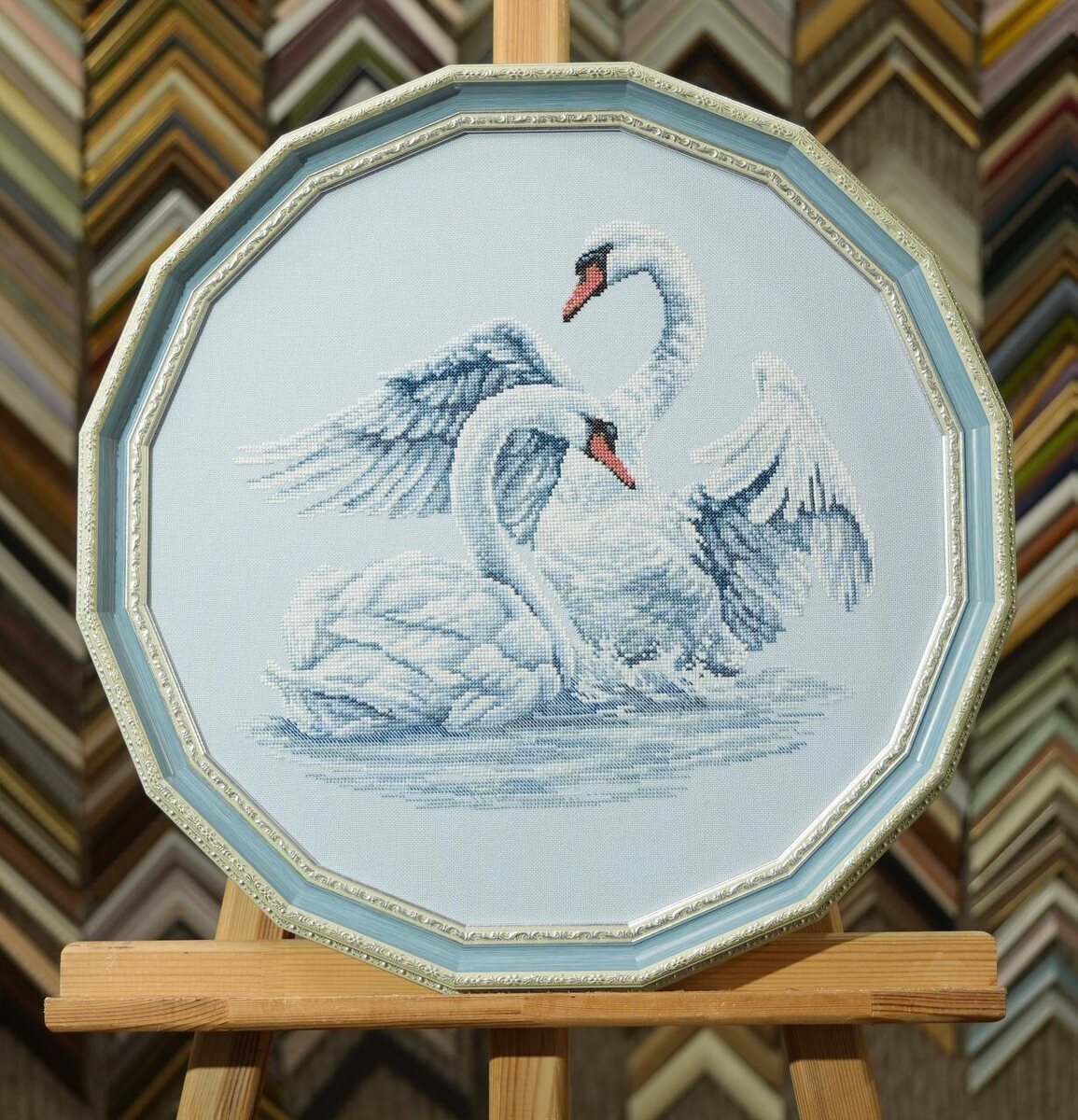 Такую вышивку обычно вышивают на мечту. 🦢 Посмотрите, какая красивая граненная рамочка у нас получилась. Я считаю, что выглядит просто замечательно. А как вам работа и оформление? 🥰