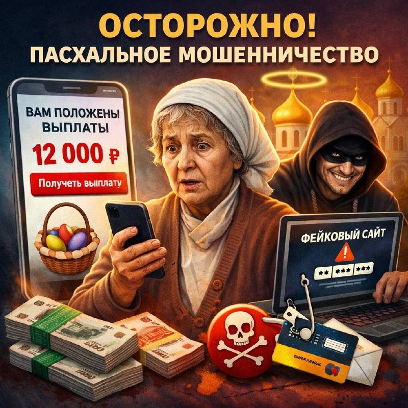 ⚠️ Перед Пасхой аферисты активизировались и придумали новую схему обмана, нацеленную на пенсионеров и верующих