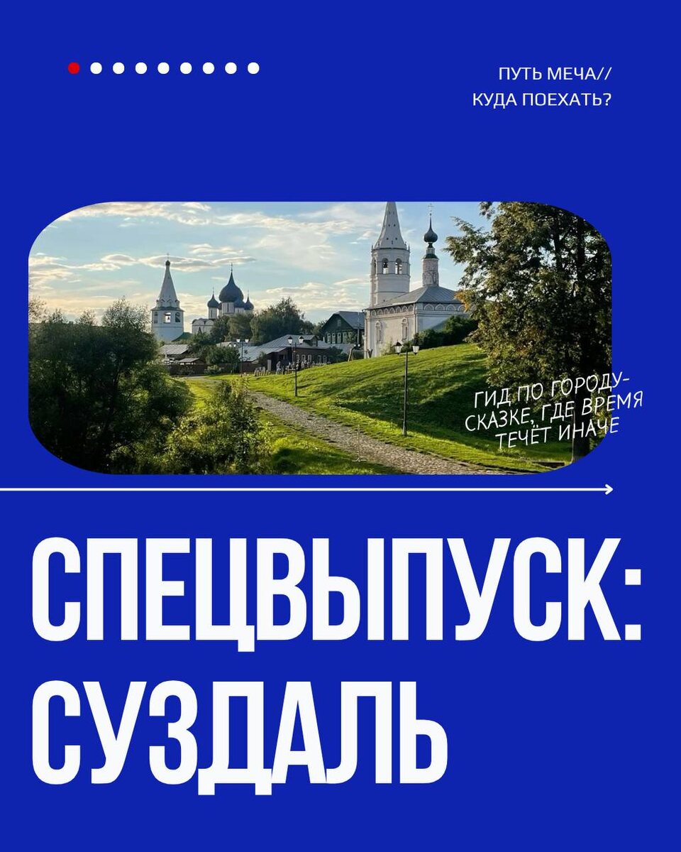 ✍ 📍Полезный путеводитель по важным местам города и его историей. Сохраняйте данную подборку и делитесь с теми, с кем планируете посетить это чудесное место. 📌 Начинаем с Суздаля – настоящего города-музея и жемчужины Золотого кольца. Здесь, в декорациях, напоминающих фильм «Морозко», ощущается атмосфера тишины, истории и той самой «русской души». 💬 А вы уже были в Суздале или только планируете туда попасть? Делитесь впечатлениями в комментариях и напишите о каком городе написать дальше👇🏻