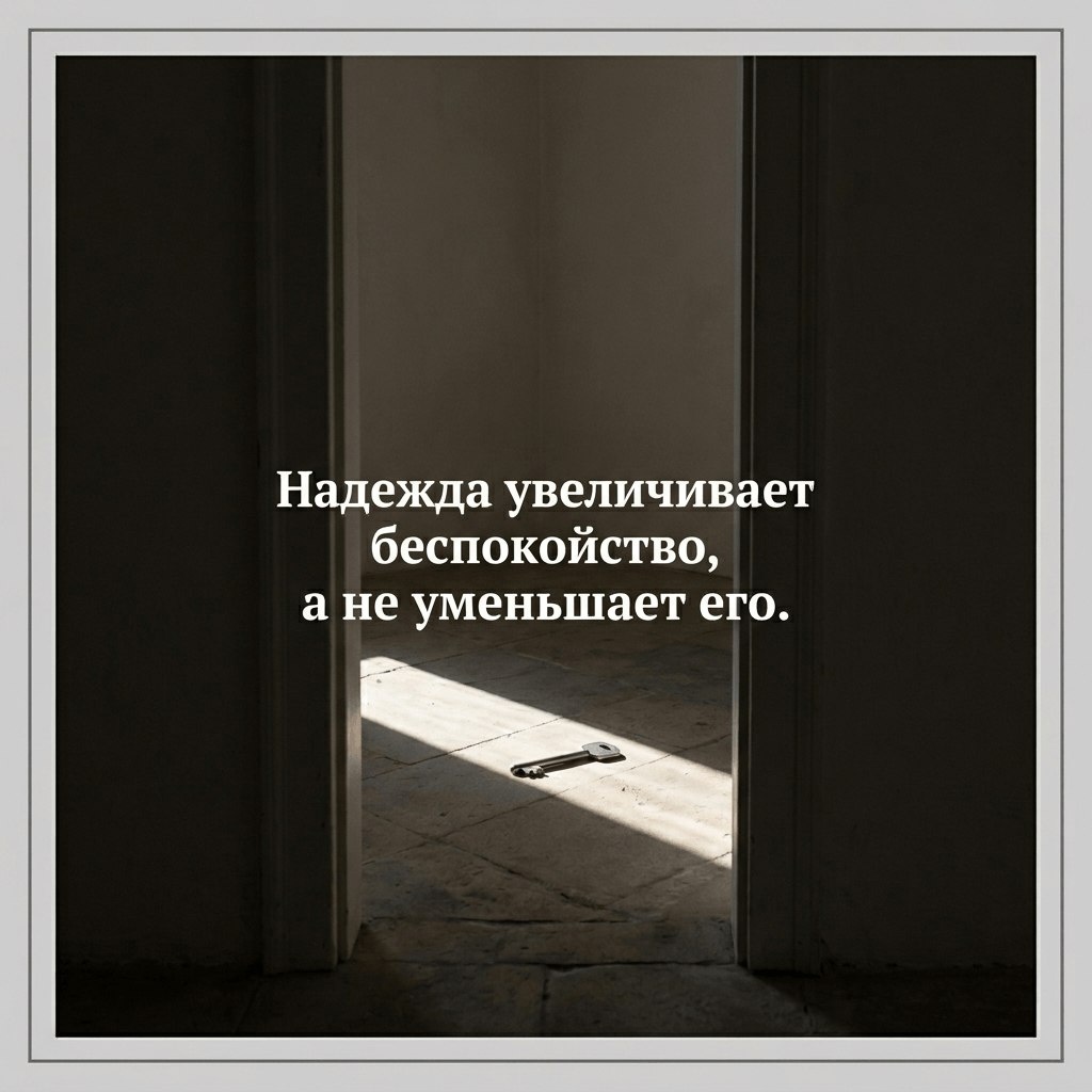 Она расшатывает. Потому что в ней появляется возможность, которую раньше нельзя было даже допустить. И вместе с ней — риск потерять. Если что-то может стать лучше, значит это можно снова разрушить. И тогда поднимается тревога. Не от плохого. От хорошего, которое может не удержаться. Надежда открывает зависимость. А зависимость делает объект значимым. И именно в этот момент хочется остановиться. Не верить. Не идти дальше. Потому что тогда не придётся переживать потерю. И поэтому надежда тревожит сильнее, чем безнадёжность. В безнадёжности всё уже известно. А здесь — слишком много того, что может появиться. И исчезнуть. ©Элеонора Красилова • TG `©Элеонора Красилова • MAX`