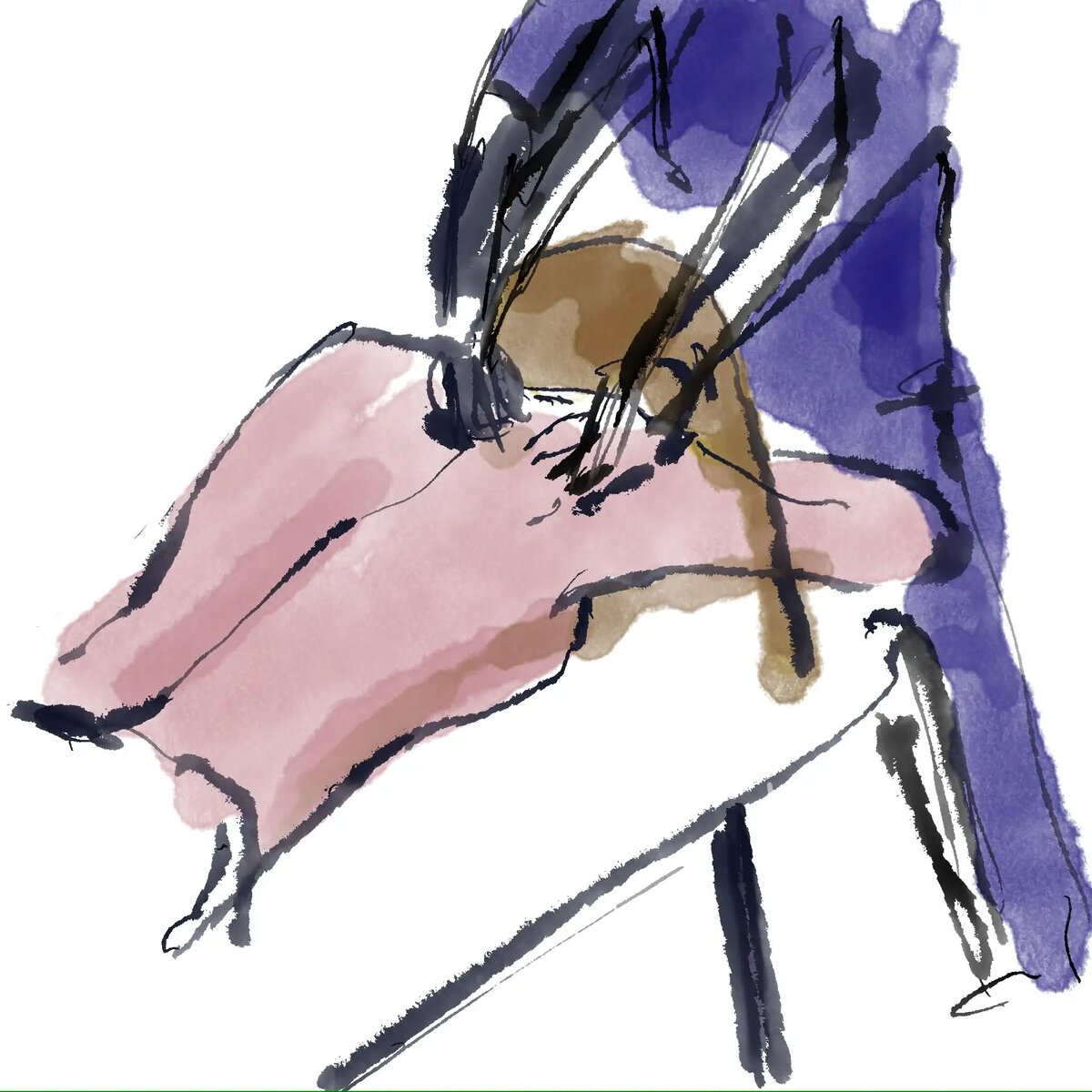 На втором сеансе - болезненные ощущения от касаний к плечам (трапецивидная мышца - спазмирована).