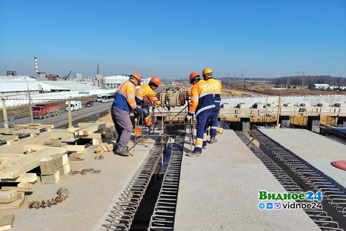 На Каширском шоссе продолжается монтаж балок пролёта 6‑полосной эстакады главного хода на пересечении с Белокаменным шоссе города Видное. Параллельно выполняются работы по сборке поддерживающих устройств для демонтажа старого путепровода Володарского шоссе над автодорогой А‑105 «Москва - аэропорт «Домодедово». «Общая строительная готовность объекта составляет порядка 50%. Сейчас строители работают круглосуточно, на площадке задействовано более 140 рабочих и 12 единиц техники», - сообщает министр транспорта и дорожной инфраструктуры Московской области Марат Сибатулин. Завершить реконструкцию Каширского шоссе планируют в 2027 году. Подробную схему Каширского шоссе после реконструкции смотрите здесь. «Видное 24» в MAX: max.ru/vidnoe24. Подписывайтесь!