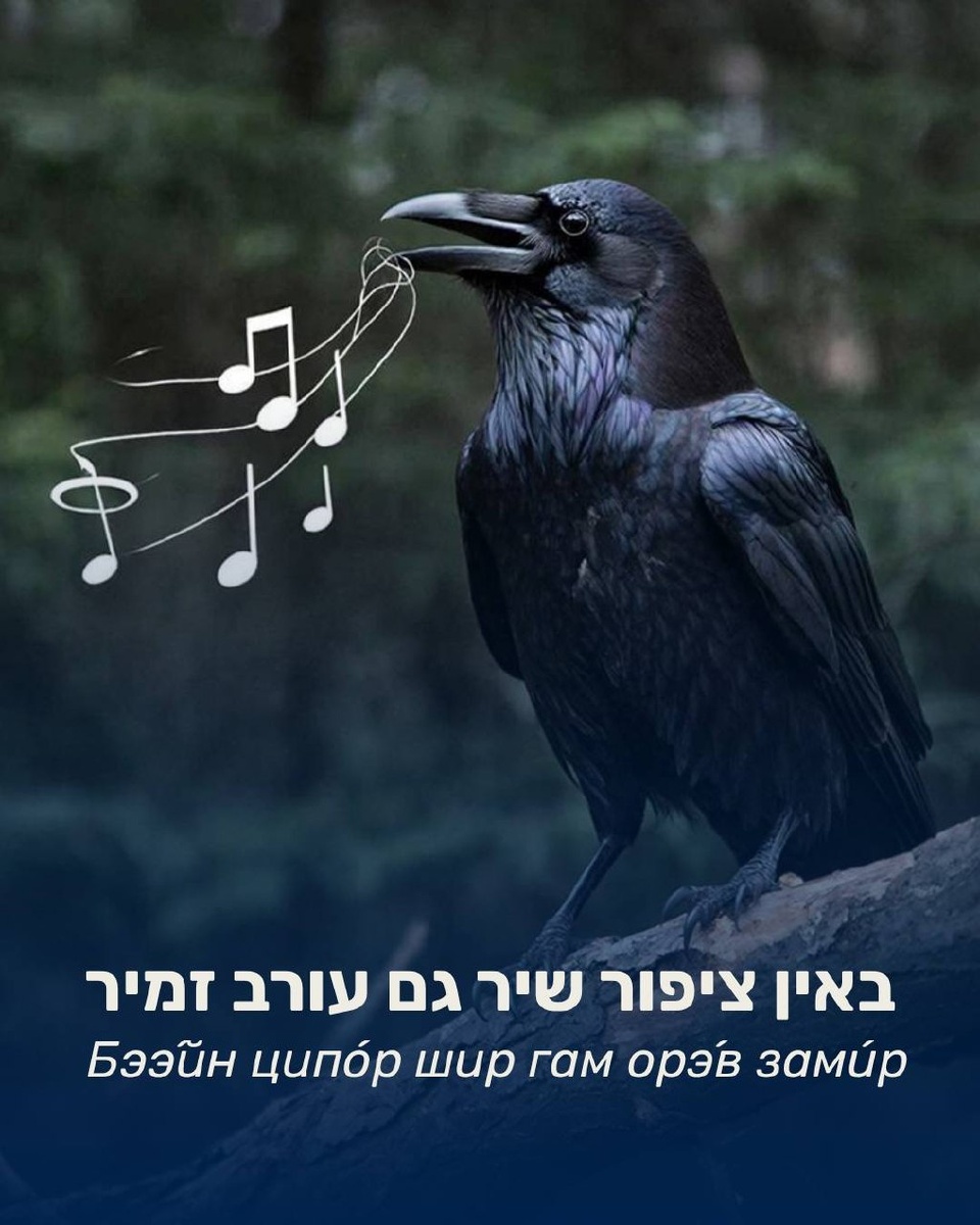 : באין ציפור שיר גם עורב זמיר Бээ́йн ципо́р шир гам орэ́в зами́р Буквальный перевод: Когда нет певчей птицы, даже ворона - соловей. ציפור שיר [ципо́р шир] певчая птица עורב [орэ́в] ворон, ворона זמיר [зами́р] - соловей Смысл поговорки: Приходится довольствоваться малым, если нет чего-то другого; если нет лучшего, то и это сойдёт. Пример использования: המסעדה האהובה עלינו הייתה מלאה, אז אכלנו בדוכן שווארמה הקרוב. באין ציפור שיר גם עורב זמיר. Перевод: Любимый ресторан был переполнен, поэтому мы поели в ближайшем ларьке с шаурмой. «Когда нет певчей птицы то и ворона - соловей». А какой русский эквивалент для этой поговорки вам вспомнился? 😉 ✍🏻Пишите в комментариях! Ивритания