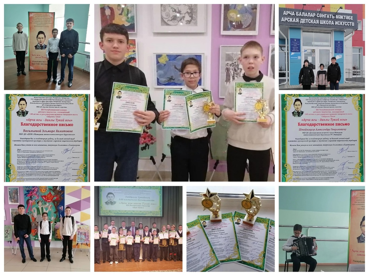 Мамадыш на Республиканском конкурсе «Арча ягы — данлы Тукай ягы» -- Детская школа искусств г. Мамадыш им. композиторов Яруллиных сообщает о впечатляющих успехах своих учеников на престижном Республиканском конкурсе детского творчества «Арча ягы — данлы Тукай ягы», посвящённом 140-летию со дня рождения великого татарского поэта Габдуллы Тукая. Ученики школы продемонстрировали высокий уровень мастерства и стали лауреатами в двух номинациях: 🎹 Номинация «Народные инструменты. Баян» Преподаватель: Васильева Эльмира Халитовна - Гайфутдинов Карим (старшая группа) — лауреат 🥇 степени - Андреев Айзат (старшая группа) — лауреат 🥇 степени - Хамидуллин Аслан (средняя группа) — лауреат 🥈 степени 🎸 Номинация «Народные инструменты. Гитара» Преподаватель: Штейнгауэр Александр Генрихович - Степанов Дмитрий (старшая группа) — лауреат 🥇 степени Наставники учеников были отмечены благодарственными письмами за плодотворную работу и значительный личный Показать полностью... ✅ Подписаться l Мы в