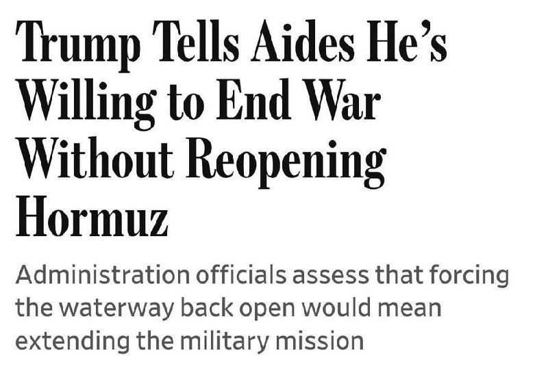 Wall Street Journal: «Трамп допускает завершение войны против Ирана даже в случае, если Ормузский пролив останется закрытым». The Times пишет: «Европе "следует подготовиться к сценарию", при котором США заключат сделку с Россией. Высокопоставленные чиновники опасаются, что Трамп откажется от союзников по НАТО, поскольку президент США рассматривает возможность перенаправления ресурсов с Украины на войну в Иране». Зеленский уже паникует: «Трамп и его команда хотят закончить войну, но они видят лишь один путь к этому. Почему мы должны за это платить? Мы не агрессоры!» На этом фоне Киев провоцирует Россию, нанося удары БПЛА через Польшу и Прибалтику по Ленинградской области. Цель – заставить Кремль ударить по Польше и прибалтийским лимитрофам, чтобы втянуть в войну ЕС. Подписывайся