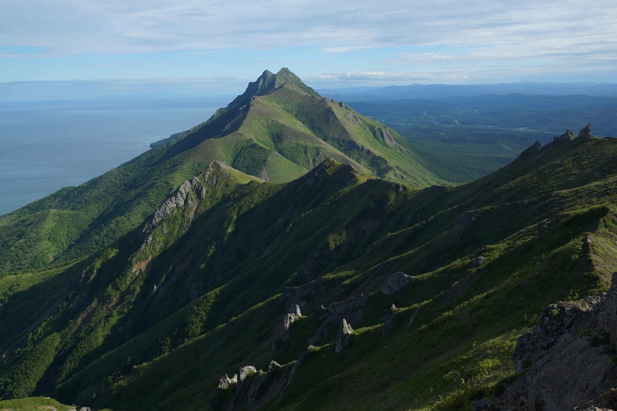 Хребет Жданко, расположенный в южной части острова Сахалин, по праву считается одной из его самых ярких природных достопримечательностей. Эта горная цепь протянулась на 15 километров вдоль восточного побережья острова, создавая уникальный ландшафт, где крутые склоны встречаются с бескрайним простором Охотского моря. Максимальная точка хребта — пик Жданко — достигает высоты 682 метров.