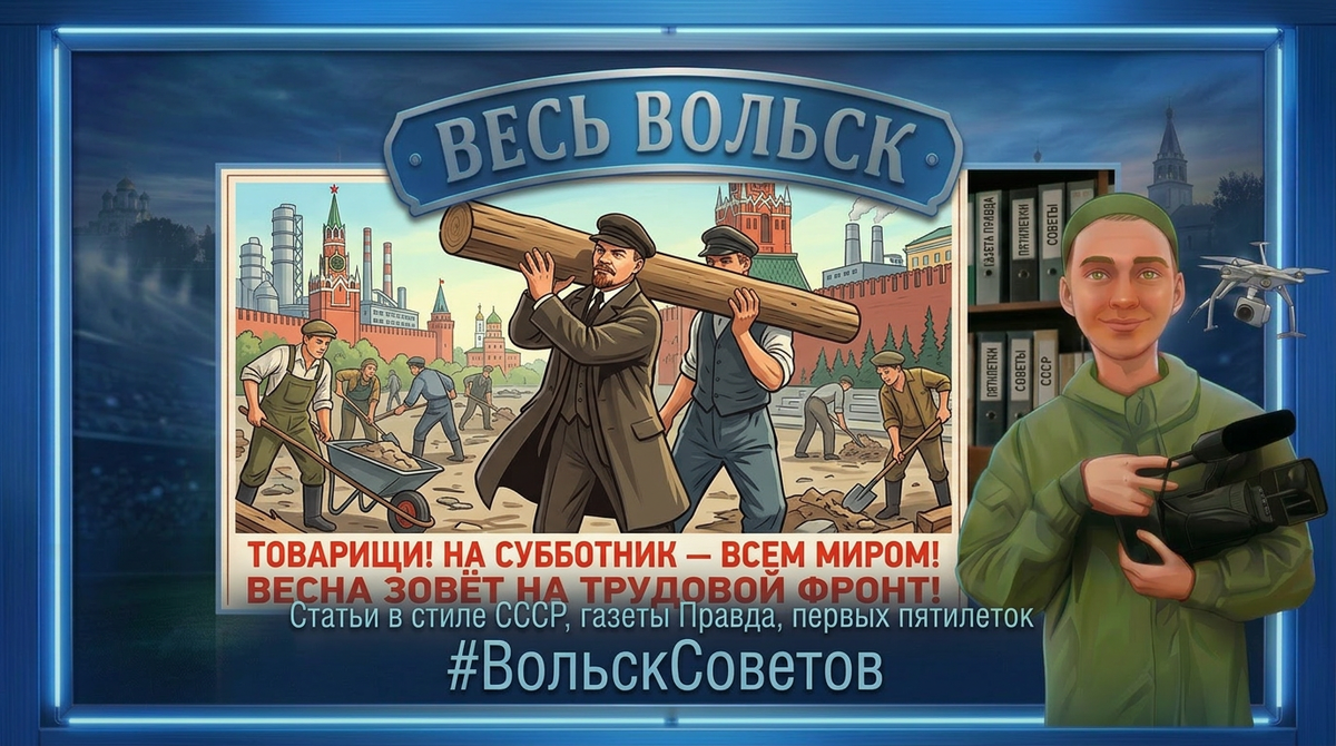 #ВольскСоветов С приходом весны, когда солнце начинает пригревать землю, а ручьи весело бегут по оврагам, наш долг — выйти на трудовую вахту и очистить улицы, дворы и площади от следов зимы! Уже несколько недель работники МБУ «Комбинат благоустройства» трудятся не покладая рук. Они — на передовой. Но разве можно победить в одиночку? Разве не каждый из нас должен взять в руки метлу, грабли и лопату? **С 1 АПРЕЛЯ В НАШЕМ РАЙОНЕ НАЧИНАЕТСЯ ВЕСЕННИЙ МЕСЯЧНИК БЛАГОУСТРОЙСТВА!** Помните, как начиналось наше социалистическое строительство? Помните, как в те далёкие, но славные дни, когда закладывались первые камни нового мира, сам Ильич выходил на субботник с бревном на плече, показывая пример всему народу? Не словами, а делом доказывал: чистота, порядок, красота городов — это дело рук самих трудящихся! **НАШ ДЕВИЗ: «НЕ ЖДИ — УЧАСТВУЙ! НЕ СМОТРИ — ДЕЛАЙ!»** Территории нашего города уже распределены. Каждое предприятие, каждая организация, каждый дом закреплены за определённым участком. И это
