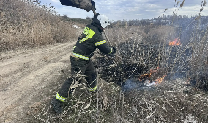 Пожарные потушили загоревшийся камыш в Советском районе Волгограда