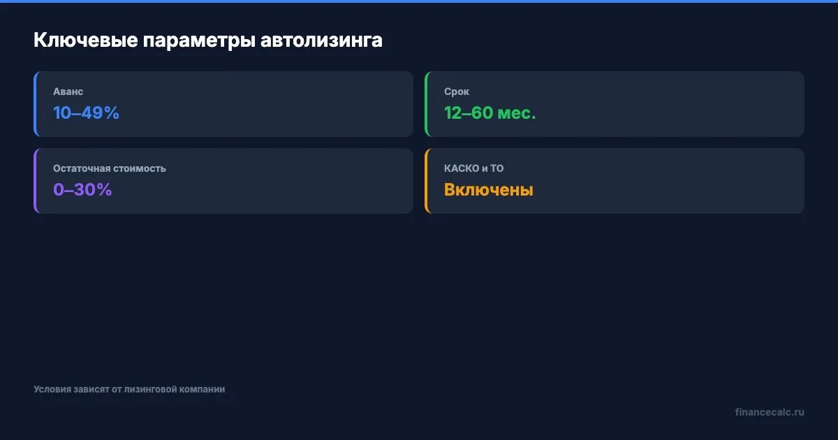 Расчёт приведён для примера. Условия лизинга зависят от компании, модели авто и кредитной истории. Точные параметры уточняйте у лизингодателя. Данные актуальны на март 2026 года.