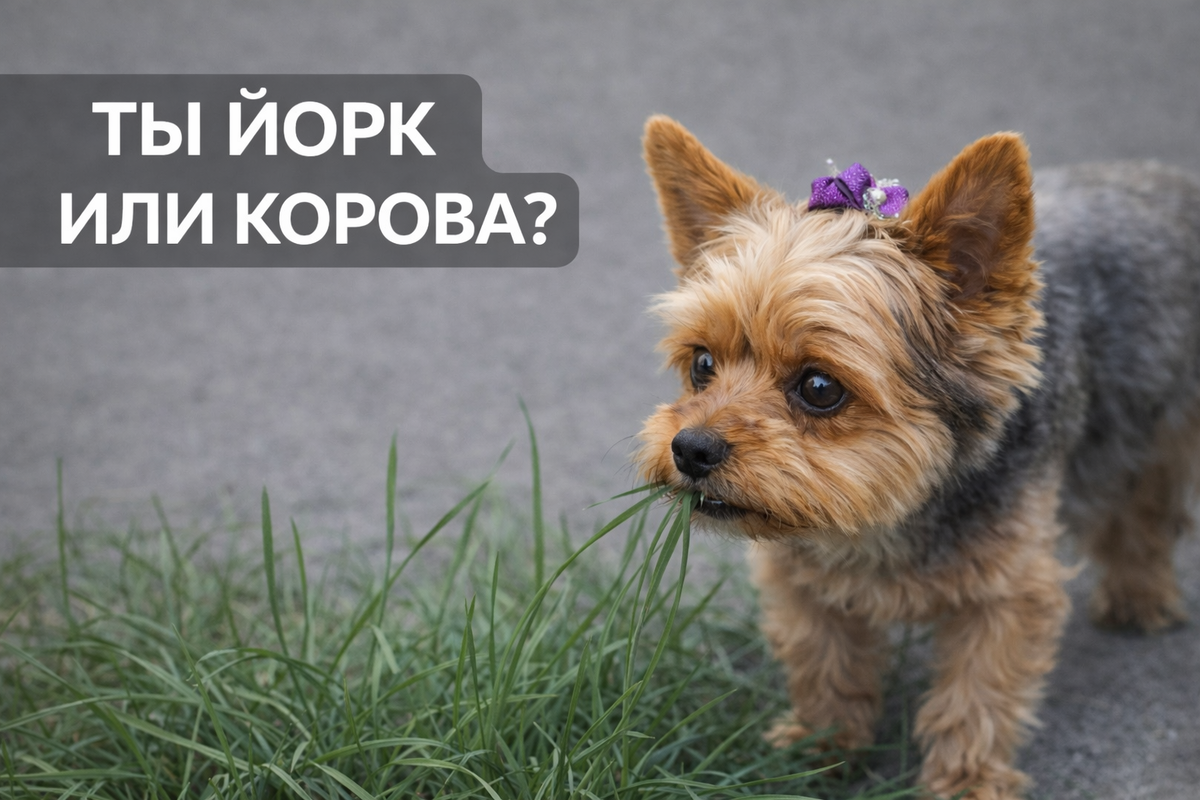 Наверняка, ваш йорк хоть раз на прогулке ел траву с газона с таким видом, будто его вывели не гулять, а пастись.