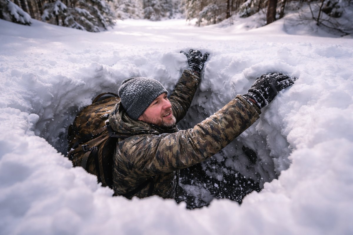 Илья вышел из зимовья рано, когда воздух ещё стоял неподвижный и тяжёлый, будто ночь не до конца отпустила лес. Печь он загасил ещё с вечера — уходить собирался налегке, пройти по старой дороге, проверить дальние капканы и к вечеру вернуться. Всё было привычно: мешок за плечами, ружьё за спиной, лыжи скрипят под морозным настом, дыхание ровное. Он знал эту дорогу как свои руки — не один сезон ходил по ней, знал каждую развилку, каждую поваленную сосну, каждую низину, где весной собирается вода. Именно поэтому он шёл уверенно. Слишком уверенно. Снег лежал ровно, гладко, будто его специально выровняли. Никаких провалов, никаких намёков на опасность. Лес стоял светлый, редкий, солнце только начинало пробиваться сквозь вершины, и казалось — день будет спокойным. Он шёл быстро, почти не глядя под ноги. Где-то на середине пути ему даже пришла мысль — надо бы сбавить темп, проверить наст, но он отмахнулся. Здесь всегда было безопасно. Сколько раз он проходил — и ничего. И вот именно в этот мо