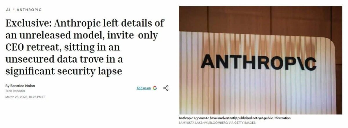 Они анонсируют новую модель Claude Mythos, которую считают самой мощной в своей истории, с значительными улучшениями в логике и коде. В этих же документах упоминается, что модель несёт «беспрецедентные риски» для кибербезопасности. На фоне этой новости акции некоторых компаний в сфере безопасности начали падать. NeuroFlux #Anthropic #ClaudeMythos #кибербезопасность #технологии #искусственныйинтеллект #риск #инновации #акции #революция #документы