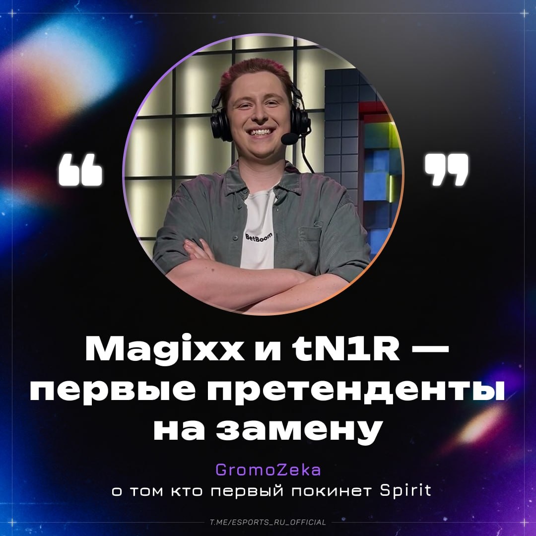 На мой взгляд, он просто не вписался в ростер, ни по ролям, ни по вайбу. Думаю, если Спирит провалят мажор (как минимум не выйдут в плей-офф или полуфинал) будут снова изменения в составе. Скорее всего, magixx и tN1R первые претенденты на замену. 🔥 Читай эксклюзивно на Esports.ru 🔥 👍 Esports.ru | CS